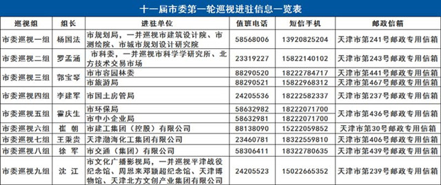 天津:巡视进驻市科委等11家单位 公布联系方式