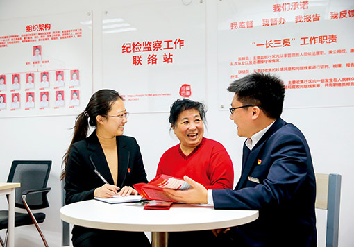 与此同时,各区纪委监委深感,乡镇(街道)纪检监察机构要对数量较大的监察对象进行有效监督,还缺乏有力支撑。基于此,市纪委监委统筹指导,要求各区结合区情实际,整合基层监督力量,为乡镇(街道)纪检监察机构安装上“监控探头”和“远程扫描仪”——在村(社区)设立纪检监察工作联络站,站长由村(社区)党组织纪检委员或村务监督委员会主任等兼任,配备若干兼职联络员或信息员,广泛收集廉情信息和涉及公职人员作风的社情民意,推动监察工作向基层有效延伸。