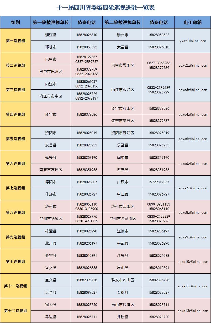 日前,十一届四川省委第四轮巡视已全部完成进驻,本轮巡视将立足“六围绕一加强”的政治定位,集中利用2个月时间,对全省6个市和39个县(市、区)开展常规巡视。