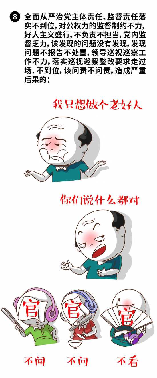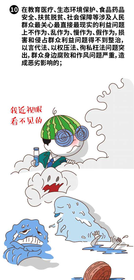 有这11种情形,党组织和领导干部就要被问责 来源:中央纪委国家监委网站 时间:2019-09-09 15:07:16 点击: 次 【字体:小 大】 近日,中共中央印发了修订后的《中国共产党问责条例》。根据规定,党组织、党的领导干部违反党章和其他党内法规,不履行或者不正确履行职责,有下列情形之一,应当予以问责: 分享到: 【打印正文】